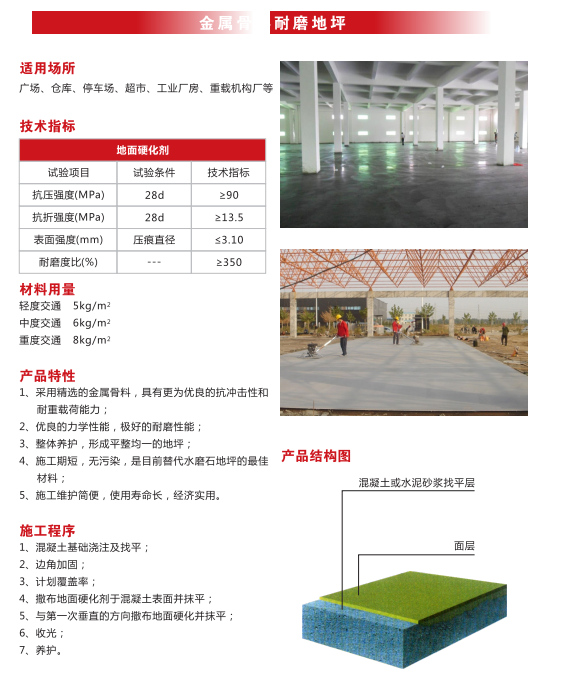 公司以“腳踏實地,盡善盡美”為服務宗旨,憑借專業的施工隊伍,先進的施工設備,豐富的工程施工經驗,為您提供最優性價比的地坪系統設計方案及經久耐用的質量保證,為您節省寶貴的時間和金錢。根據不同的使用功能需求、現場施工條件、地域差異等因素,公司主要涉及產品分為:混凝土密封固化劑系列、環氧樹脂地坪漆涂裝系列、PVC卷材系列、運動球場涂裝系列、停車場交通標識系列、巖棉保溫防火復合板外保溫系列等。
